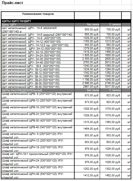 Продаем электрощитовое оборудование от производителя по доступным ценам Компания Щитстандарт является ведущим производителем электрощитовой продукции на рынке уже более 15 лет. Наша главная цель создание качественного и безопасного оборудования, доступного по цене. Прайс приложен.